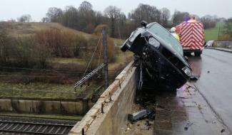 Baelen : une voiture en fâcheuse position au-dessus de la ligne de chemin de fer