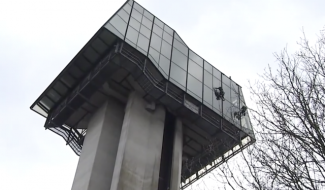 Ils lavent les vitres de la tour de la Gileppe à 77m de haut