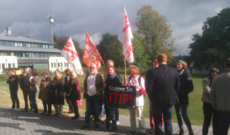 Manifestation contre les traités CETA et TTIP devant le Parlement germanophone