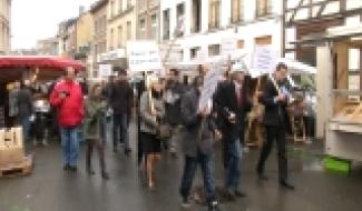 Verviers : des jeunes Ecolo, CSC et FGTB sur le marché pour défendre leurs droits