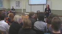 La Haute Ecole Libre Mosane Sainte-Claire de Verviers organisait cet après-midi le 3ème "Défi-Langues", un concours ouvert aux réthos des écoles de la région. Le principe est simple : pendant 5 minutes, des équipes de 2 élèves présentent un exposé dans une langue étrangère. Une belle manière de se rendre compte que le niveau de nos jeunes est plutôt bon.