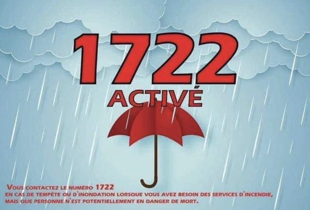 En cas de dégâts dus au vent ou aux inondations, et si aucune vie n’est en danger, contactez le 1722 pour désengorger les autres numéros d’urgence.