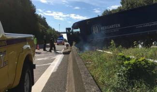 Un camion en travers de la berme centrale sur la E42 près de Ligneuville