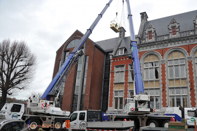 Une cheminée de plus de 15 tonnes du Palais de Justice de Verviers menace dangereusement de tomber sur la chaussée ! Ce matin, à 7 heures 30, deux grues télescopiques de 45 et 60 mètres ont été appelées par la Régie des bâtiments pour la démonter de toute urgence ! Il faut dire que l’état du Palais de Justice de Verviers inquiète de plus en plus. Datant de la deuxième moitié du XIXème siècle, le prestigieux bâtiment est confronté à des problèmes de vétusté qui sont désormais connus de tous. En septembre dernier, l’aile Janson avait déjà été fermée à titre préventif. En 2014, ce sont quatre salles d’audience qui avaient été fermées pour des raisons de sécurité.