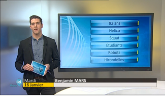 20 min Le 22h30 (15 septembre 2023) 20 min - publié le 15/09/2023 Réseaux sociaux Partager Lire l'article Tous les épisodes Facet Saison Image - publié le 16/01/2018 Vivre Ici, le JT de la mi-journée (16 janvier 2018) Image - publié le 15/01/2018 Vivre Ici, le JT de la mi-journée (15 janvier 2018) Image - publié le 12/01/2018 Vivre Ici, le JT de la mi-journée (12 janvier 2018) Image - publié le 11/01/2018 Vivre Ici, le JT de la mi-journée (11 janvier 2018) Image - publié le 10/01/2018 Vivre Ici, le JT de la mi-journée (10 janvier 2018) Image - publié le 09/01/2018 Vivre Ici, le JT de la mi-journée (9 janvier 2018) Image - publié le 08/01/2018 Vivre Ici, le JT de la mi-journée (8 janvier 2018) Image - publié le 22/12/2017 Vivre Ici, le JT de la mi-journée (22 décembre 2017) Charger plus Nos émissions A ne pas manquer Image Epikids Image Vision Sports Image Science Hebdo Image Bienvenue chez vous